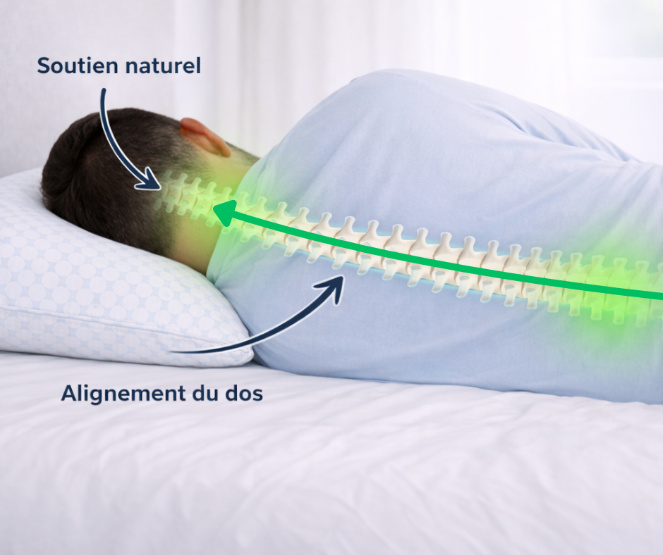 Oui. Grâce à sa mousse mémoire adaptative, l’Oreiller NUR soutient parfaitement les cervicales que vous dormiez sur le dos ou sur le côté. Il aide à maintenir un alignement naturel de la colonne vertébrale toute la nuit.